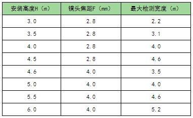 1)   根據現場安裝高度進行鏡頭焦距選型,3.0-4.5米需選擇2.8mm型號,4.5-6.0米需選擇4.0mm型號。